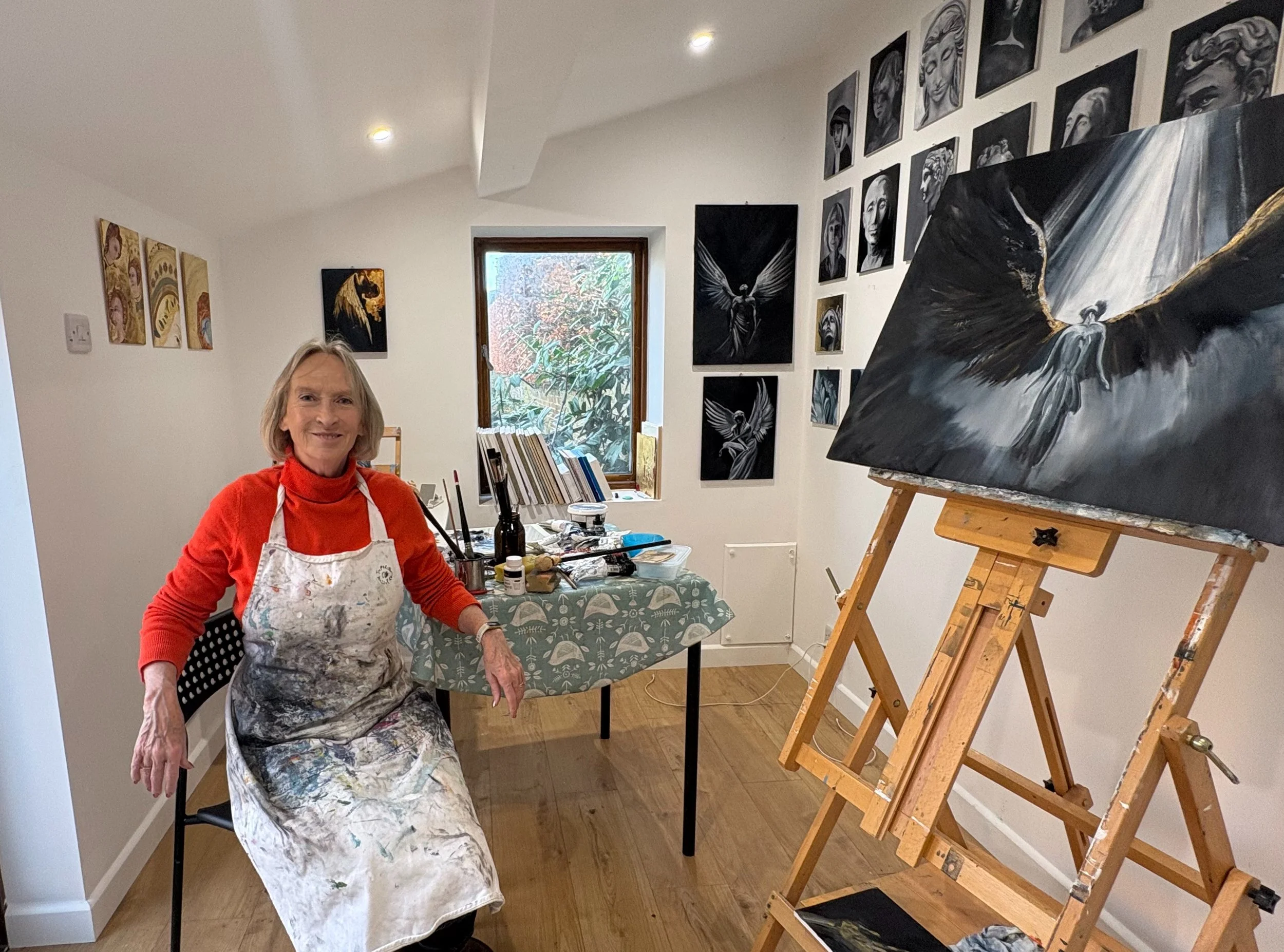 Nikki Cheetham’s current work explores themes such as ethereal love and the potentially protective presence of angels, inviting viewers to explore their own connection to the spiritual realm. Through art, she navigates the light and dark of the imagination, balancing the sacred and profane. Each piece invites reflection and aims to inspire a deeper understanding of the complexities of human experience.